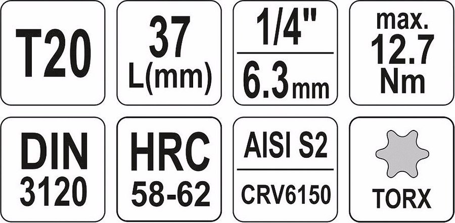 Profesionálny šesťhranný bit Torx pre 1/4" račňu.
