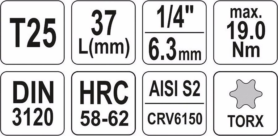Profesionálny šesťhranný bit Torx pre 1/4" račňu.