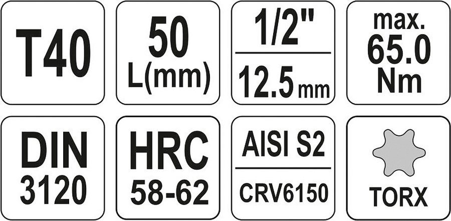 Profesionálny šesťhranný bit Torx pre 1/2" račňu.
