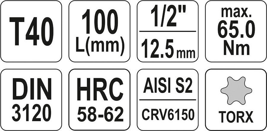 Profesionálny šesťhranný bit Torx pre 1/2" račňu.