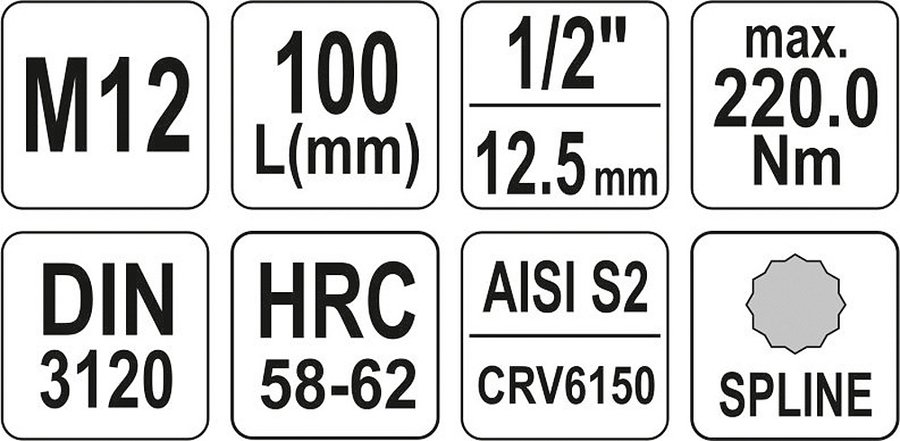 Profesionálny šesťhranný bit Viaczubý (SPLINE) pre 1/2" račňu.