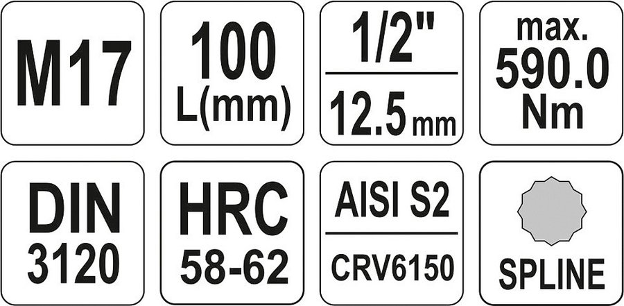Profesionálny šesťhranný bit viaczubý (SPLINE) pre 1/2" račňu.